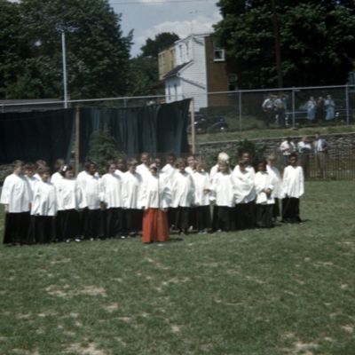 Children square dancing. Media Friends School and Media Elementary School presented similar dance performances.