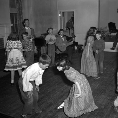 The Media Friends School students are rehearsing a program of square dances they performed during the Media Centennial Celebration's Youth Day, June 6, 1950.