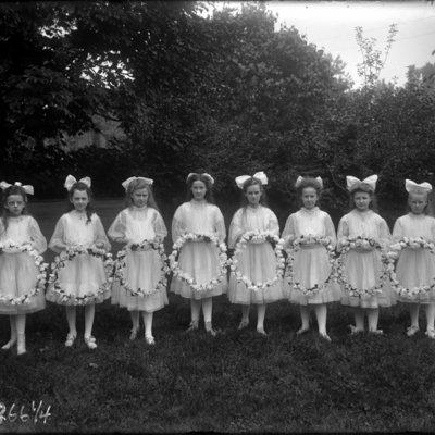 Girls holding wreaths. Group includes Sue Appleton, the photographer's daughter, so this is probably a First Baptist Church group, since that is the church the Appleton family attended.